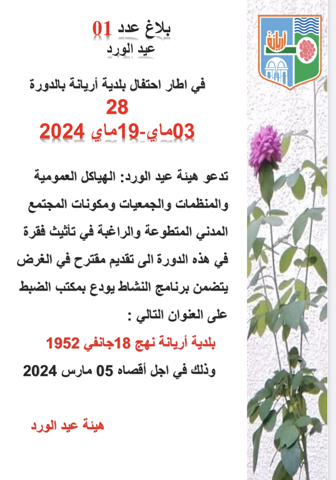 تحت إشراف السيدة سنيا شعيب المكلفة بتسيير شؤون بلدية أريانة و بالتنسيق مع رئيس مركز الشرطة البلدية و الأمن العمومي تم القيام يوم الجمعة 09 اوت 2024 بحملة حول التصدي للإنتصاب الفوضوي بالرصيف بدائرة أريانة المدينة ودائرة حي النصر و دائرة المنازه أسفرت عن: حجز 150 كرسي و 20 طاولة و عدد 1 ثلاجة و عدد4 علامات إشهارية